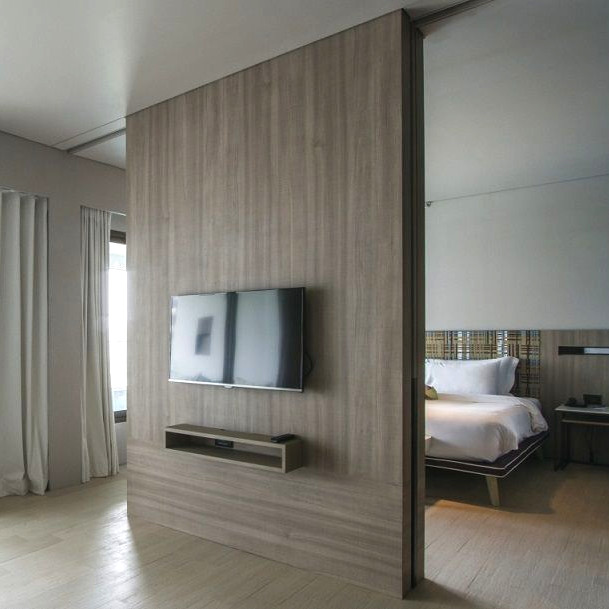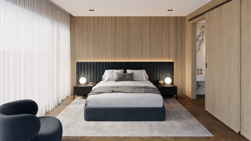 Puidu naturaalne soojus toob ruumi mugavust ja hubasust, ning filigraanne must siin tõstab esile disaini, samal ajal peegeldades toa kontseptsiooni.