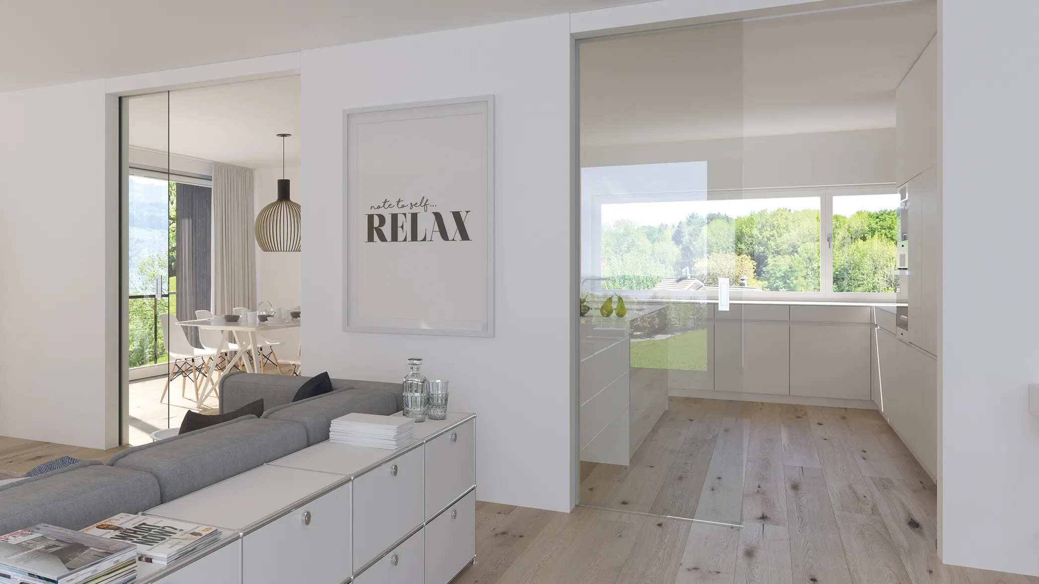 Elegantne klaasist liuguste lahendus loob visuaalse avaruse ja annab tubadele valgusküllase mulje– perfektne valgusele suunatud sisekujunduses, mis rõhutab avatust, elegantsi ja ruumidevahelist sujuvat ühendust.