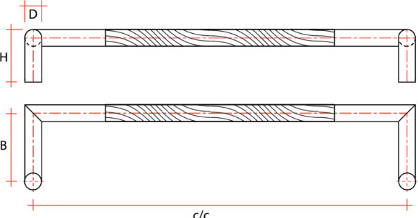 - kahepoolsed käepidemed (käepaar) läbiva kinnitusega