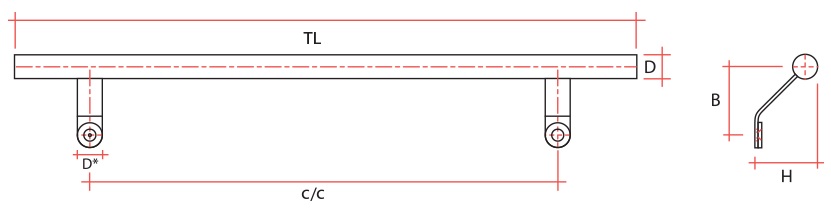 - kahepoolsed käepidemed (käepideme paar) läbiva kinnitusega