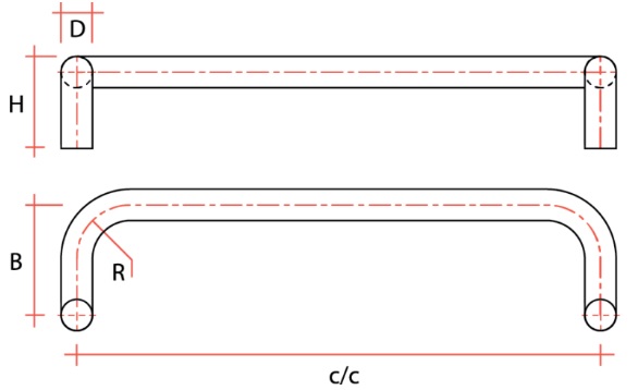 - kahepoolsed käepidemed (käepaar) läbiva kinnitusega