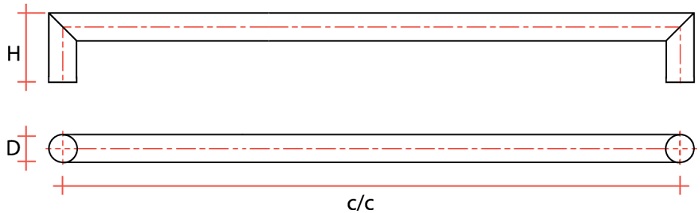 - käepideme pikkus (kinnituspunktide vaheline kaugus): 250 - 2200 mm