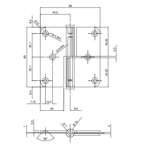 - hingede kõrgus: 89 mm