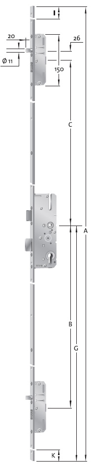 - põhilukk profiili silindri ja 2 lisaluku jaoks, millel on ümarad teraspoldid mõlemal pool põhilukku: Ø11mm