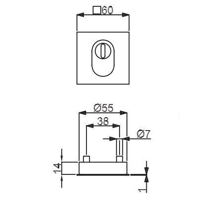 - roseti välise osa suurus: 60 x 60 mm
