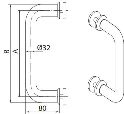 - vahemaa uksepinna ja käepideme välispinna vahel: 80 mm
