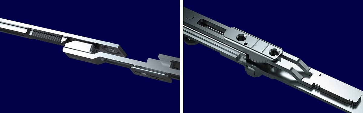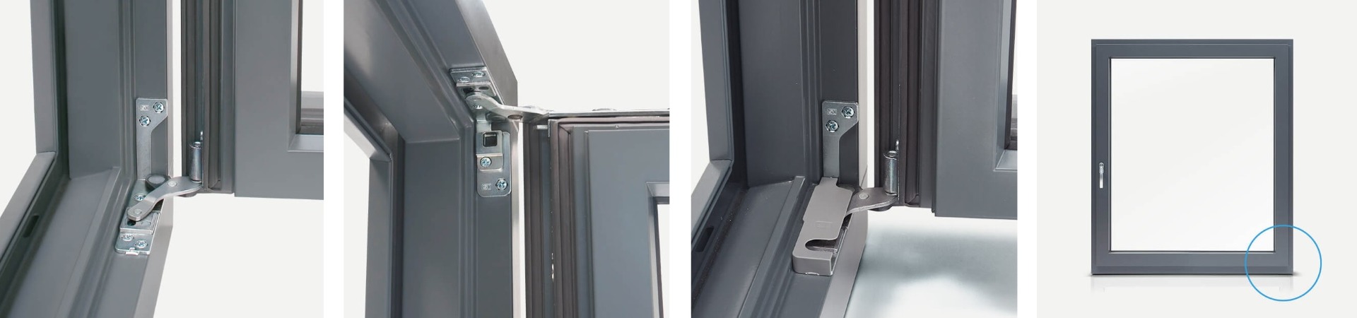 - aknaraami ja raami ühendav jõuakumuleeriv vedru hõlbustab sulgemisprotsessi isegi raskete ja suurte aknaelementide puhul