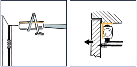 - sisseehitatud tuulepidur pidurdab sulgurit teatud nurga all - see muutub tõukekset vältida ukse liiga laia avanemist