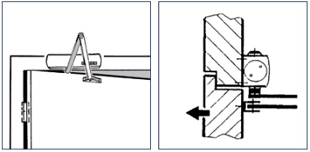 - sisseehitatud tuulepidur pidurdab sulgurit teatud nurga all - see muutub tõukekset vältida ukse liiga laia avanemist