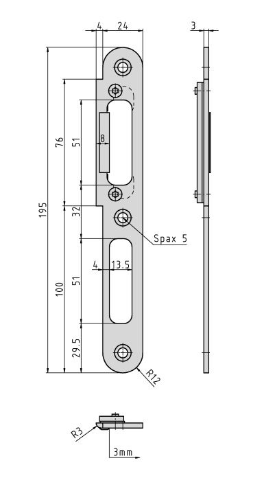 - adjustable strike plate for Scandinavian and DIN standard locks without key