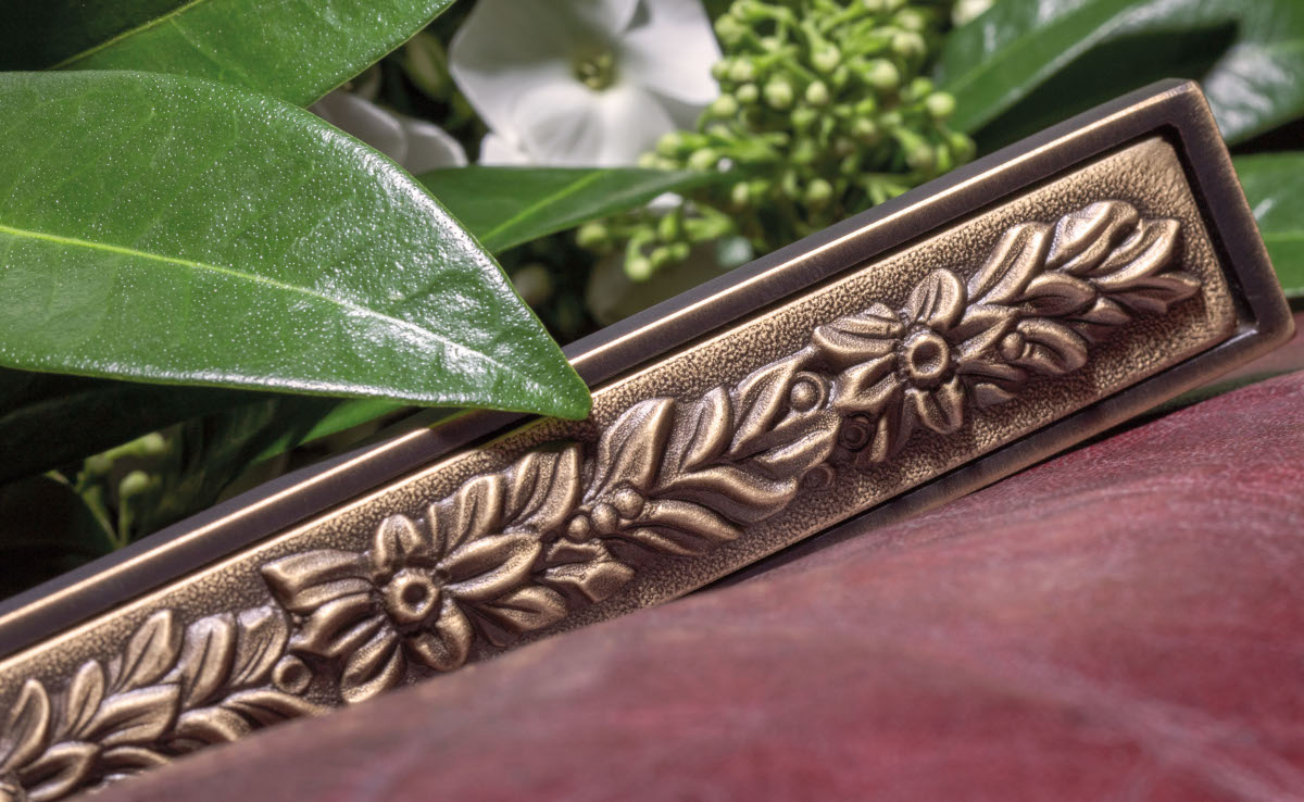 In the bronze finish, the decorations crafted by the skilled hands of craftsmen stand out thanks to a long and peculiar brushing process whereby they visually increase in volume acquiring a unique three-dimensional appearance..