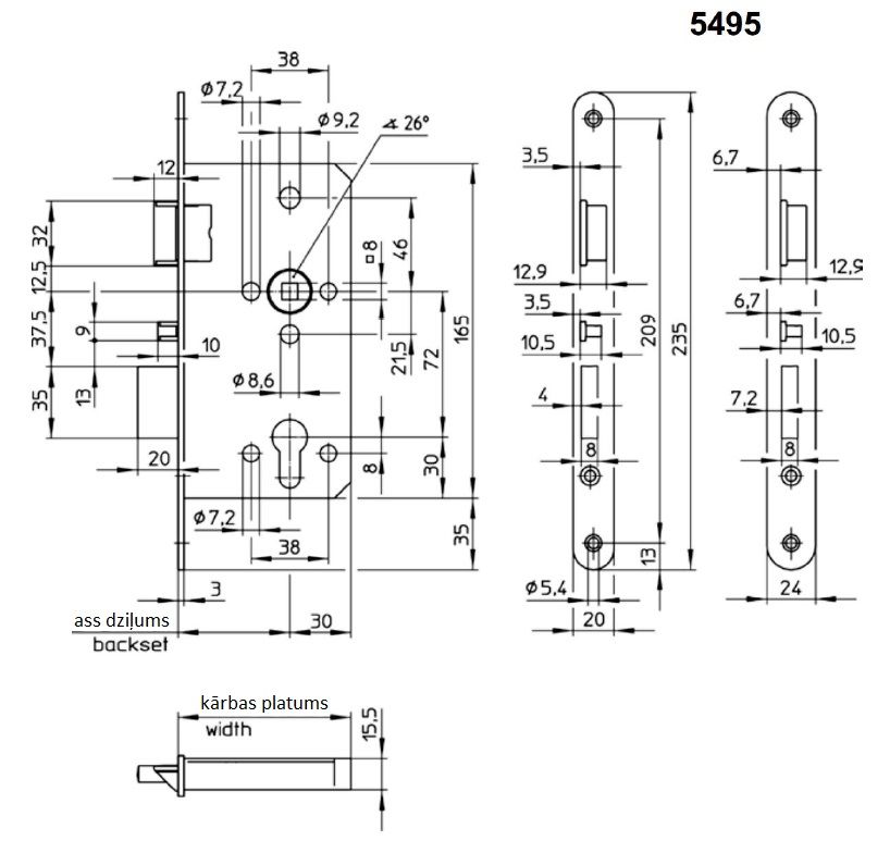 - total depth of lock case: 85 / 90 / 95 / 110 mm