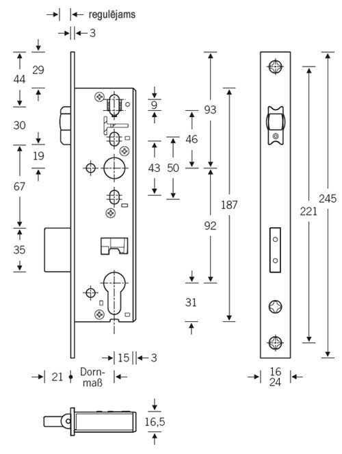 - corresponds with DIN 18 251-2, grade 3 technical requirements