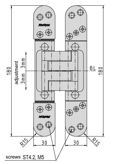 - max load: 100 kg (2 hinges per leaf)