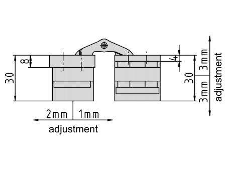 - 3-dimensional adjustability: side (+/- 3 mm), depth (+2/-1 mm) and height (+/- 3 mm)