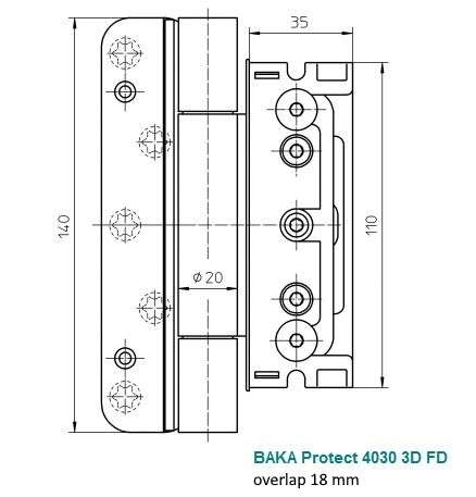 Set of adjustable hinges for exterior doors with acoustic seal BAKA Protect 4030 3D FD MSTS