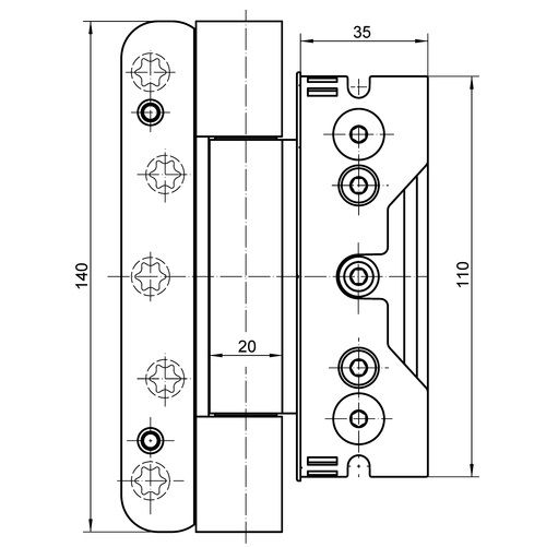 Set of adjustable hinges for exterior doors with acoustic seal BAKA Protect 4010 3D FD MSTS M
