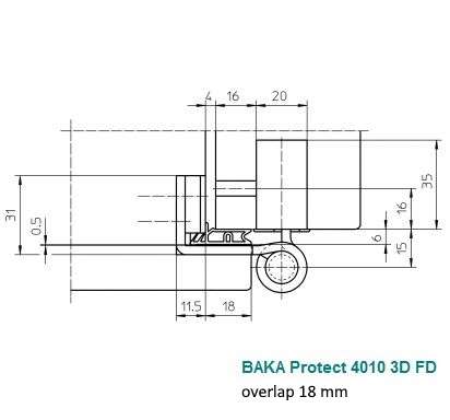 Set of adjustable hinges for exterior doors with acoustic seal BAKA Protect 4010 3D FD ZK MSTS