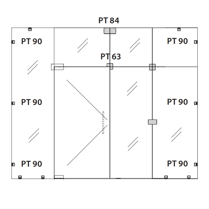 Wall/ceiling connector for all-glass constructions PT 90