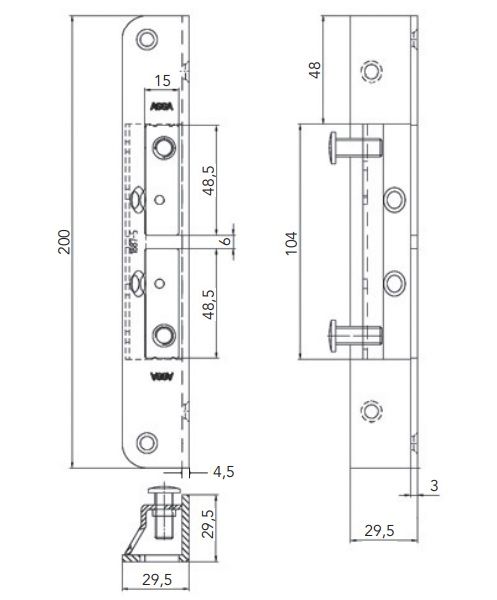 - latch seat distance from edge of strike plate: 4.5 mm