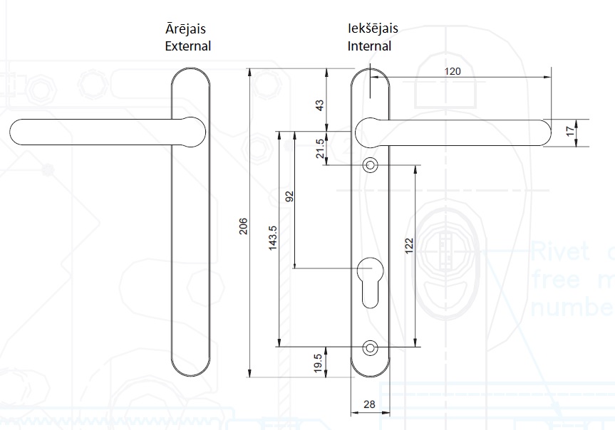 - variant DUMMY with BAC (without keyhole) backplate on the outside and PZ backplate on the inside